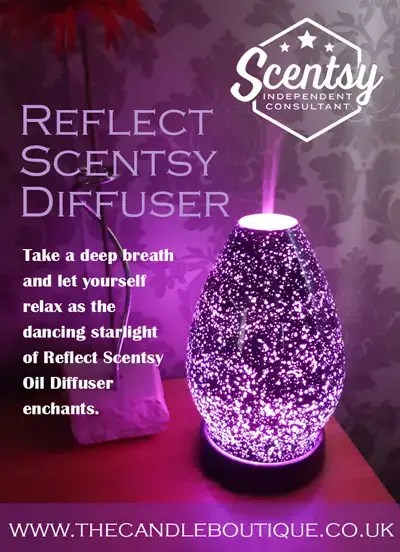 Take a deep breath and let yourself relax as the dancing starlight of Reflect Scentsy Oil Diffuser enchants. Choose the right oil for your mood.